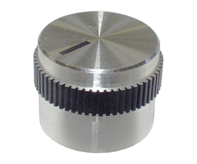 Diese Knopfserie in Präzisionsausführung ist mit einem griffigen schwarzem Rändel versehen. Die Knöpfe sind aus Aluminium gefertigt, mit glatter Oberfläche und seidenmatt eloxiert, mit Markierung.