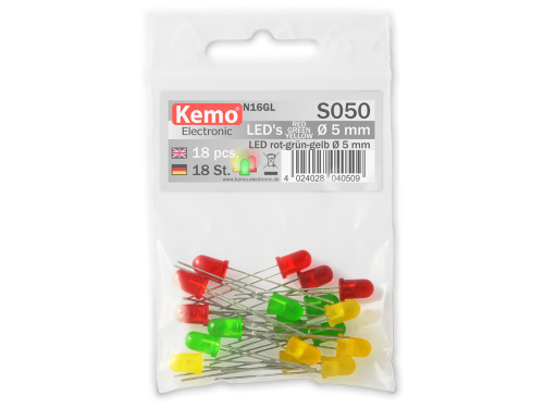 LEDs rot grün gelb, Ø 5 mm 18 Stck. S050 Kemo