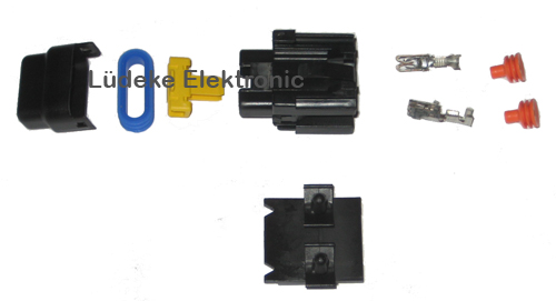 SUPERSEAL-Verbinder als Komplett-Set für2 polige Verbindungen. SUPERSEAL-Stecker- und Buchsengehäuse inklusive Flachsteck-hülsen, Flachsteckern und Gummiabdichtungen